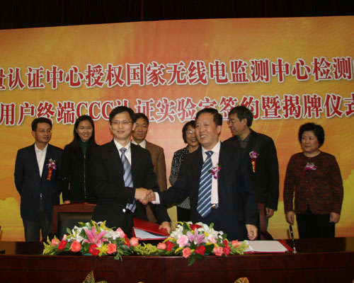 10月23日消息,日前,中國質量認證中心授權國家無線電監(jiān)測中心檢測中心(SRTC)移動用戶終端CCC認證實驗室簽約暨揭牌儀式,在北京隆重舉行。中國質量認證中心王克嬌主任、陳偉副主任,中國國家認證認可監(jiān)督管理委員會徐秋媛副處長、國家無線電監(jiān)測中心主任劉巖、國家無線電監(jiān)測中心副主任薛永剛、國家無線電監(jiān)測中心檢測中心主任宋起柱,以及來自上述單位的部門領導、客戶代表及媒體朋友100余人出席了簽約儀式。