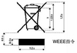 表明電池需分類回收的帶叉垃圾桶標志;