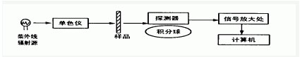 紫外線輻射源為測試提供充足且穩(wěn)定的紫外線輻射能量。單色儀將輻射源的紫外線輻射能量色散,以便進(jìn)行光譜測量。積分球可計(jì)算出由樣品出射的所有方向(直射和漫射)的光譜輻射通量。探測器為光電倍增管組成,將信號經(jīng)放大和處理后,輸入計(jì)算機(jī),進(jìn)行信號的最后處理。